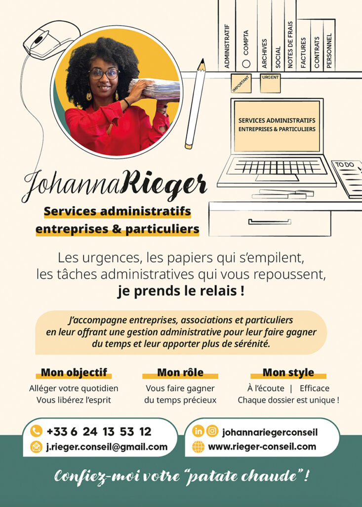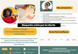 Johanna m’a confié la création complète de son flyer parce qu’elle sentait qu’il n’était pas aligné à ce qu’elle a envie d’exprimer, elle souhaitait se démarquer mais ne savait pas comment faire.